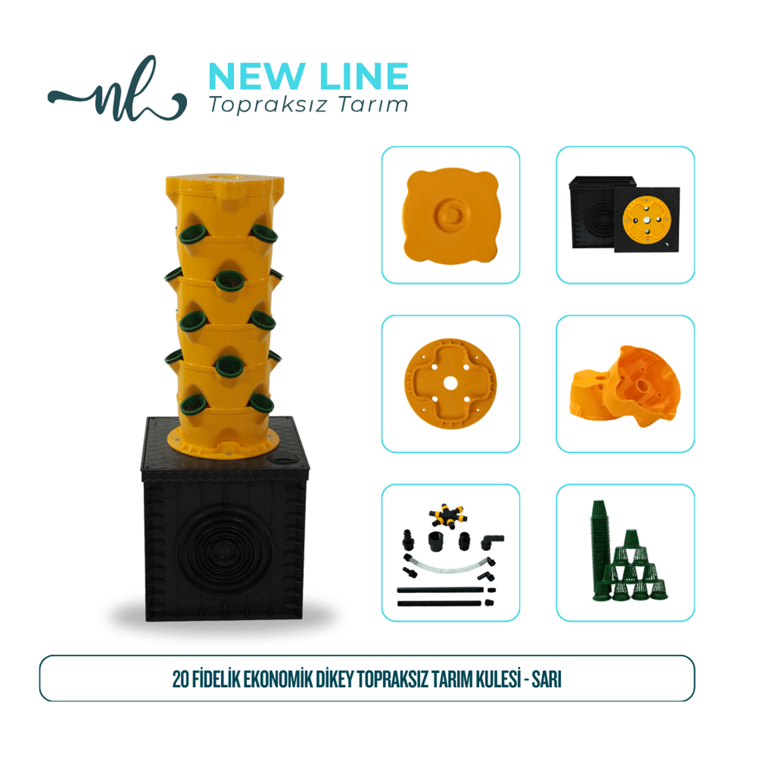20 Fidelik Ekonomik Dikey Topraksız Tarım Kulesi - Sarı