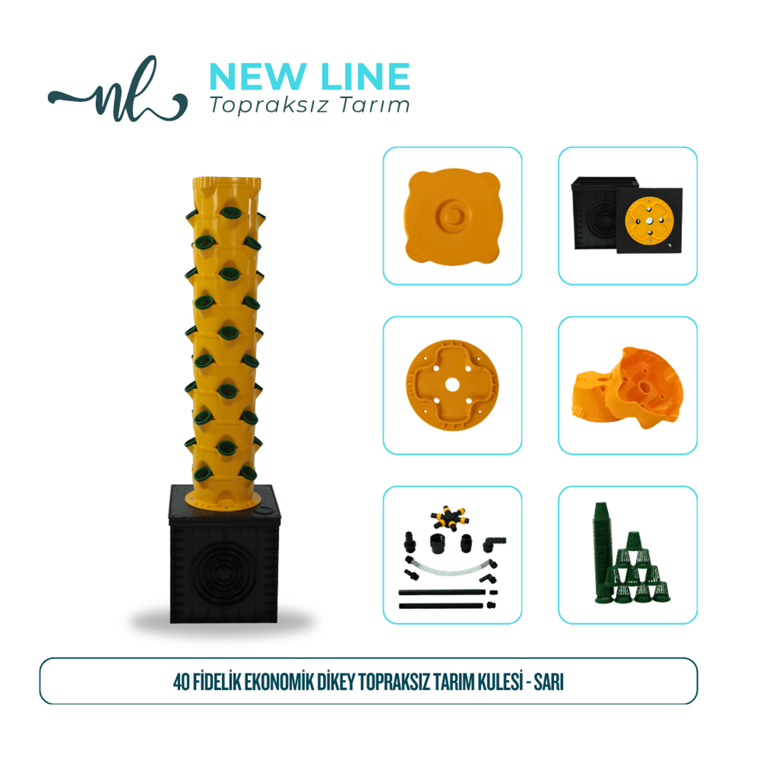 40 Fidelik Ekonomik Dikey Topraksız Tarım Kulesi - Sarı