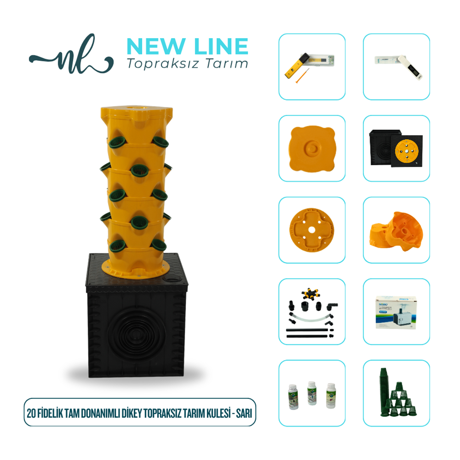 20 Fidelik Tam Donanımlı Dikey Topraksız Tarım Kulesi - Sarı