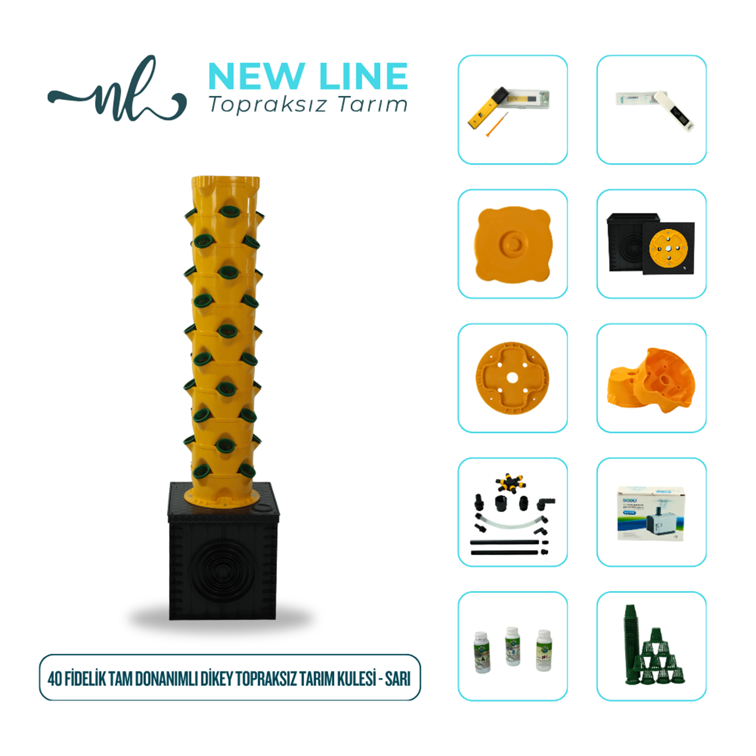 40 Fidelik Tam Donanımlı Dikey Topraksız Tarım Kulesi - Sarı