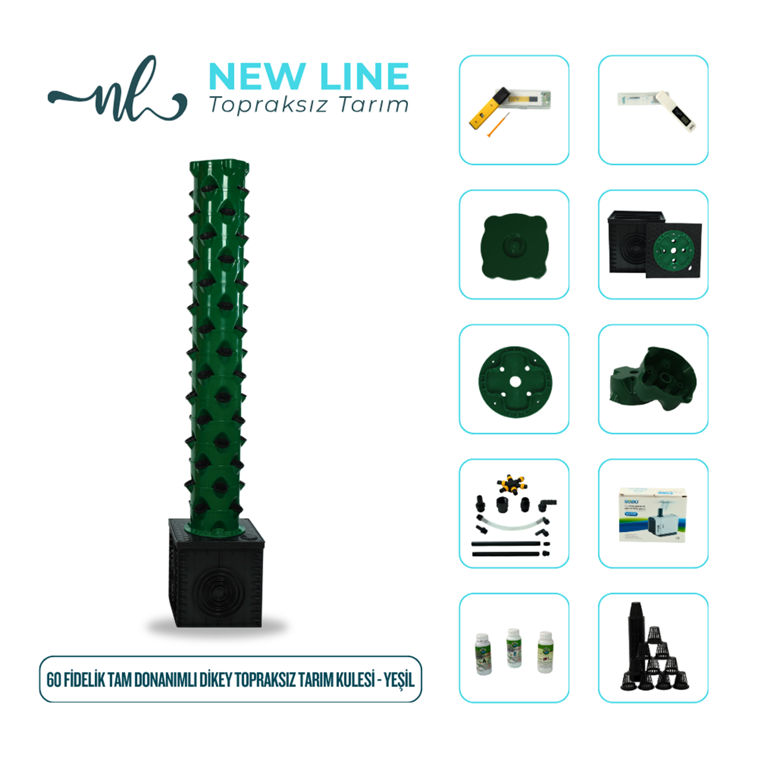 60 Fidelik Tam Donanımlı Dikey Topraksız Tarım Kulesi - Yeşil
