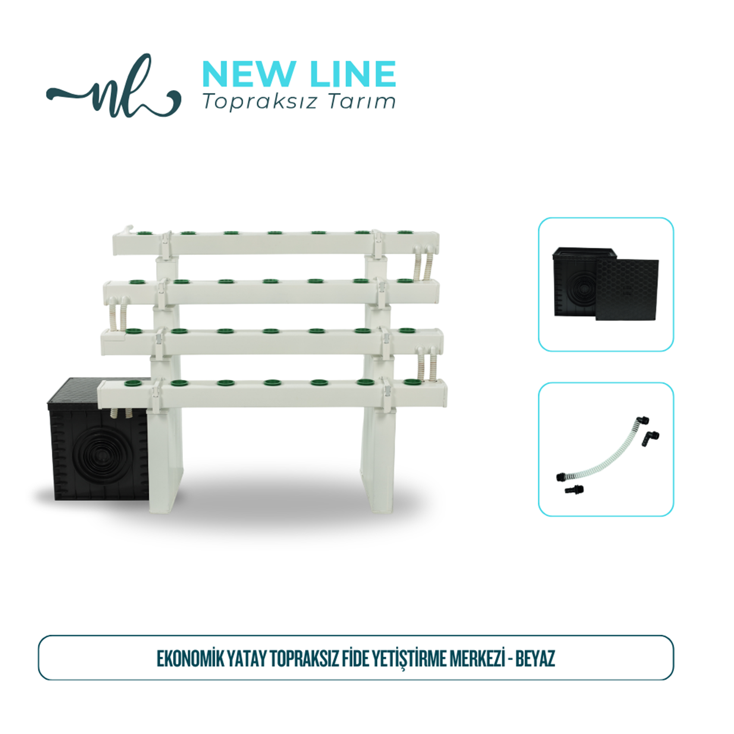Yatay topraksız tarım sistemi, kontrollü üretimle yüksek verim elde etmek isteyenler için geliştirilmiş modern bir hidroponik çözümdür. NFT (besin film tekniği) sistemi sayesinde bitki kökleri sürekli olarak besinli suyla temas eder ve hızlı, sağlıklı büyüme sağlanır.